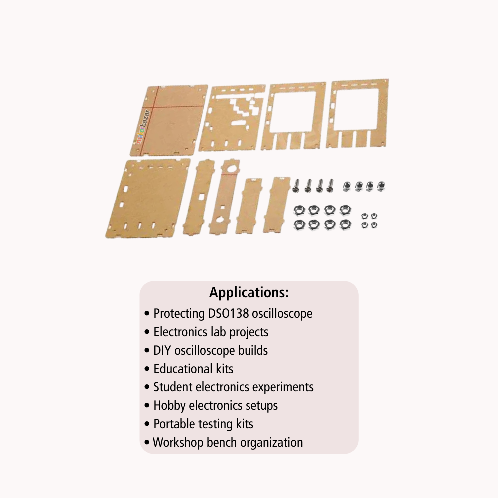 Protect and enhance your DSO138 Oscilloscope with this precision-cut DIY Acrylic Case Enclosure. Specially designed to perfectly fit the DSO138 board, this transparent case provides reliable protection against dust, accidental contact, and minor impacts while maintaining full visibility of the display and components.