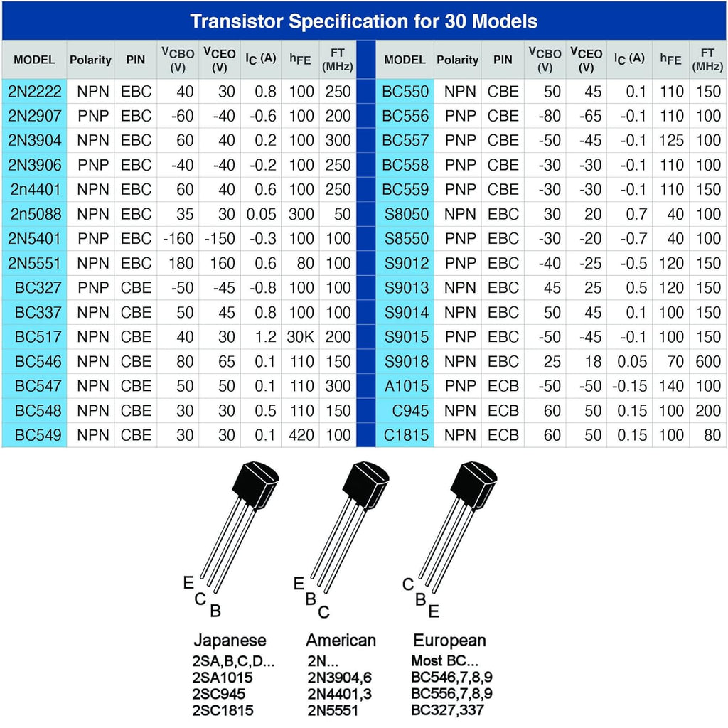 • Maximum Collector-Emitter Voltage (Vceo): 45V (BC547), 30V (BC548), 30V (BC549)