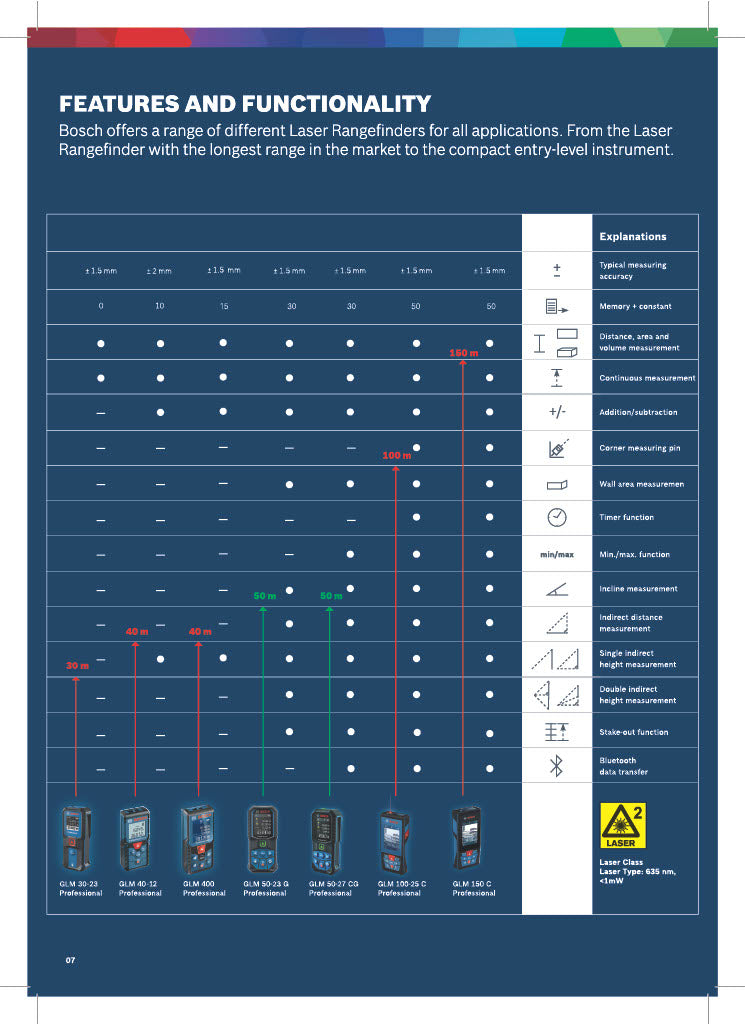 Bosch Laser Rangefinders are engineered for fast, accurate, and reliable distance measurement—ideal for construction, interior design, surveying, and DIY applications. Compact yet robust, these rangefinders use advanced laser technology to provide precise measurements over long distances with ease and minimal effort.
