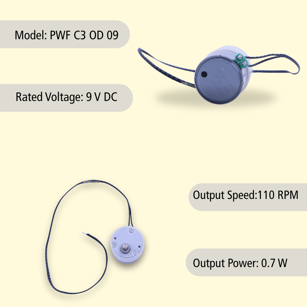 Worm Gear DC Reducer Motor (PWF C3 OD 09) – 9Volt 110 RPM
