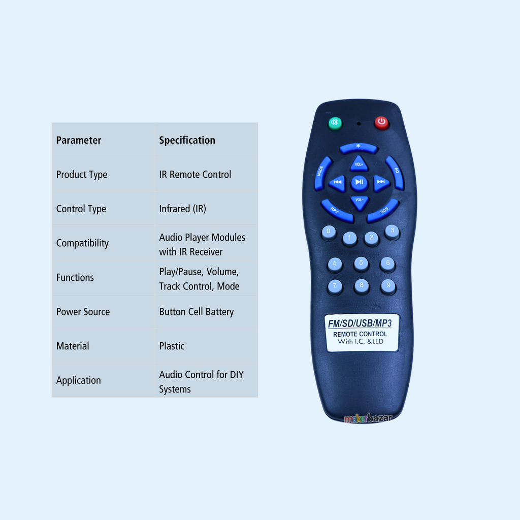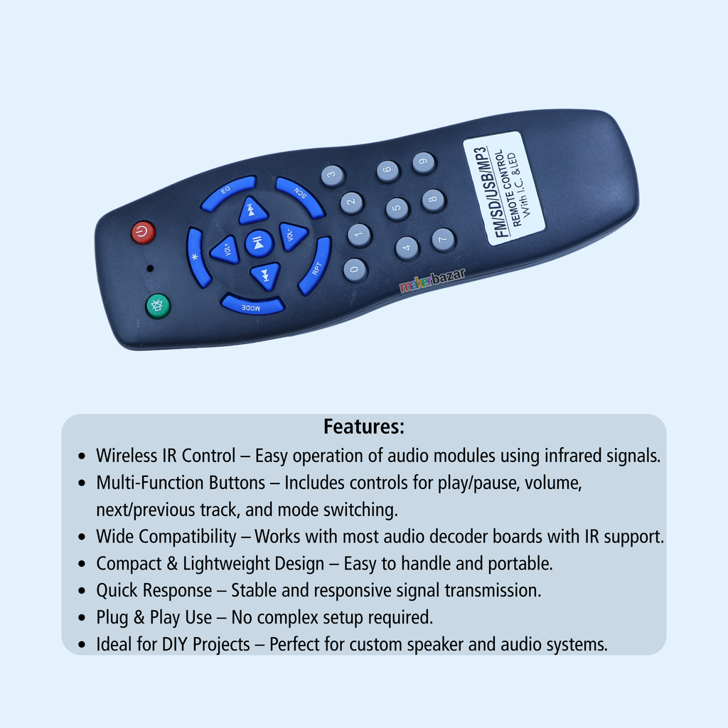 Perfect for DIY audio enthusiasts, electronics hobbyists, and multimedia setups, this IR remote provides simple and effective control for your music player modules.