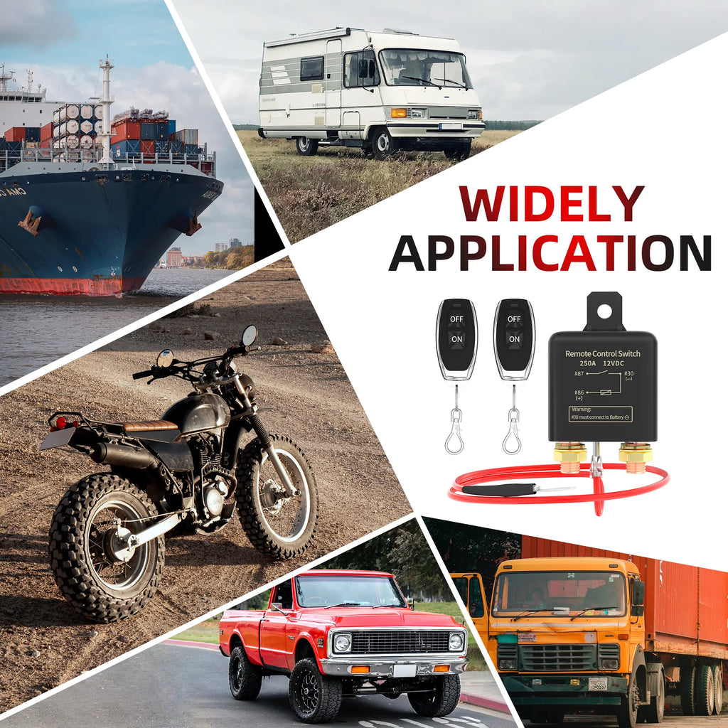This 12V Remote Battery Disconnect Switch Kit is designed for easy installation and reliable performance in cars, trucks, RVs, and other 12V battery vehicles. It allows you to disconnect or reconnect your vehicle's battery remotely with a simple push of a button. Ideal for preventing battery drain, enhancing vehicle security, and preventing unauthorized use.