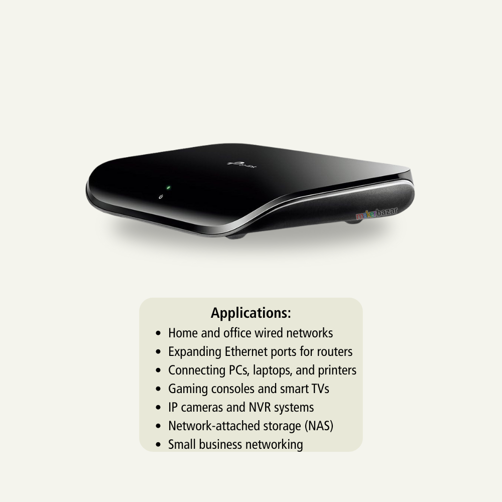 Built in a compact plastic casing, the switch supports both desktop placement and wall mounting, offering flexible installation options. Whether you are connecting PCs, smart TVs, gaming consoles, IP cameras, or network storage devices, the TL-SG1005D delivers dependable and optimized network performance.